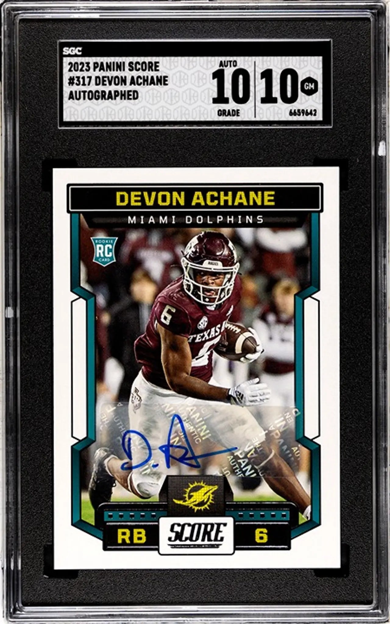 2023 Panini Score Devon Achane #317 Auto SGC GEM 10/10!