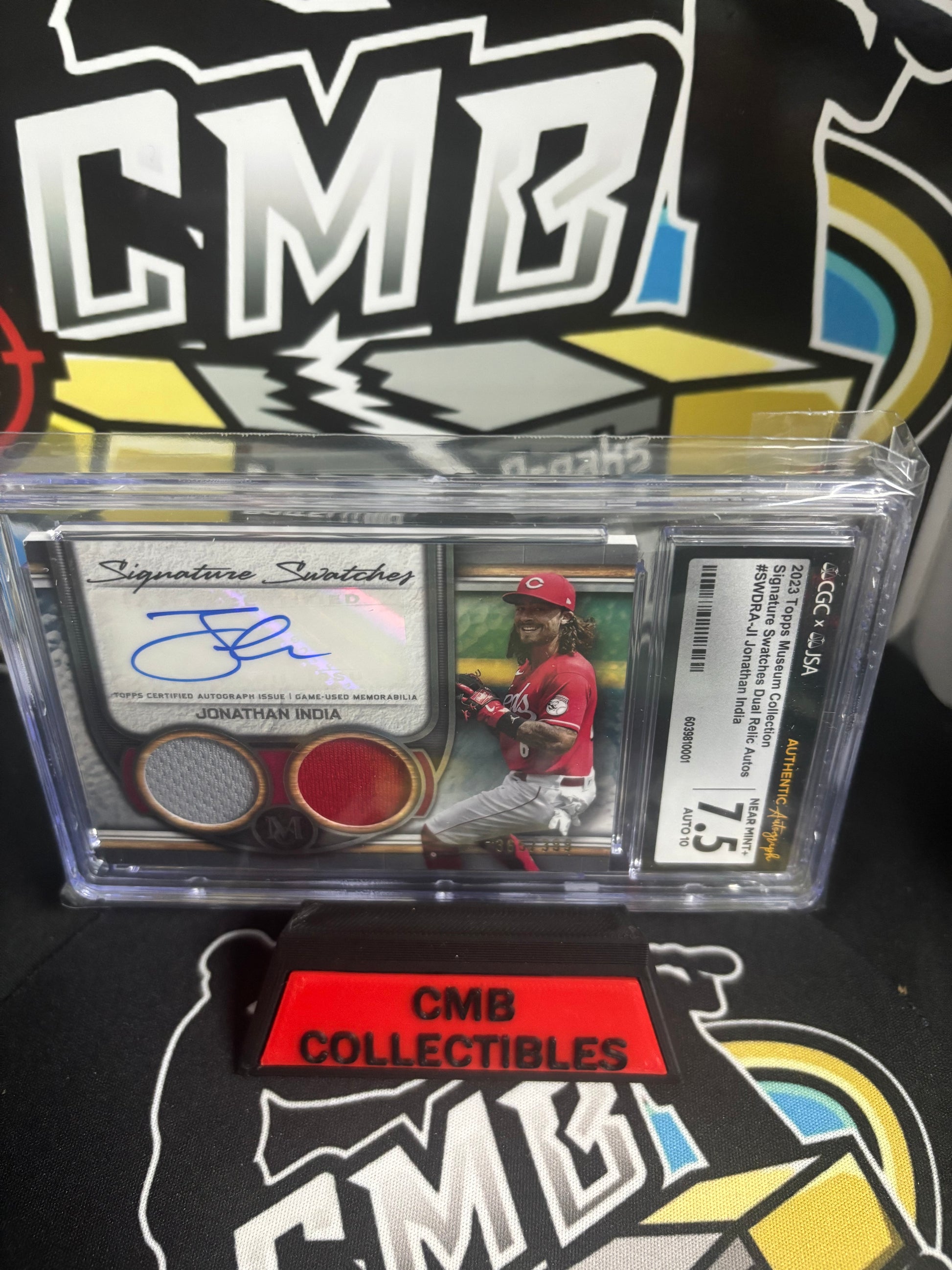 2023 Topps Museum Collection Jonathan India Signature Swatches. CGC Graded 10/7.5. Limited 365/399. Autograph graded 10. Dual Patch card graded 7.5.