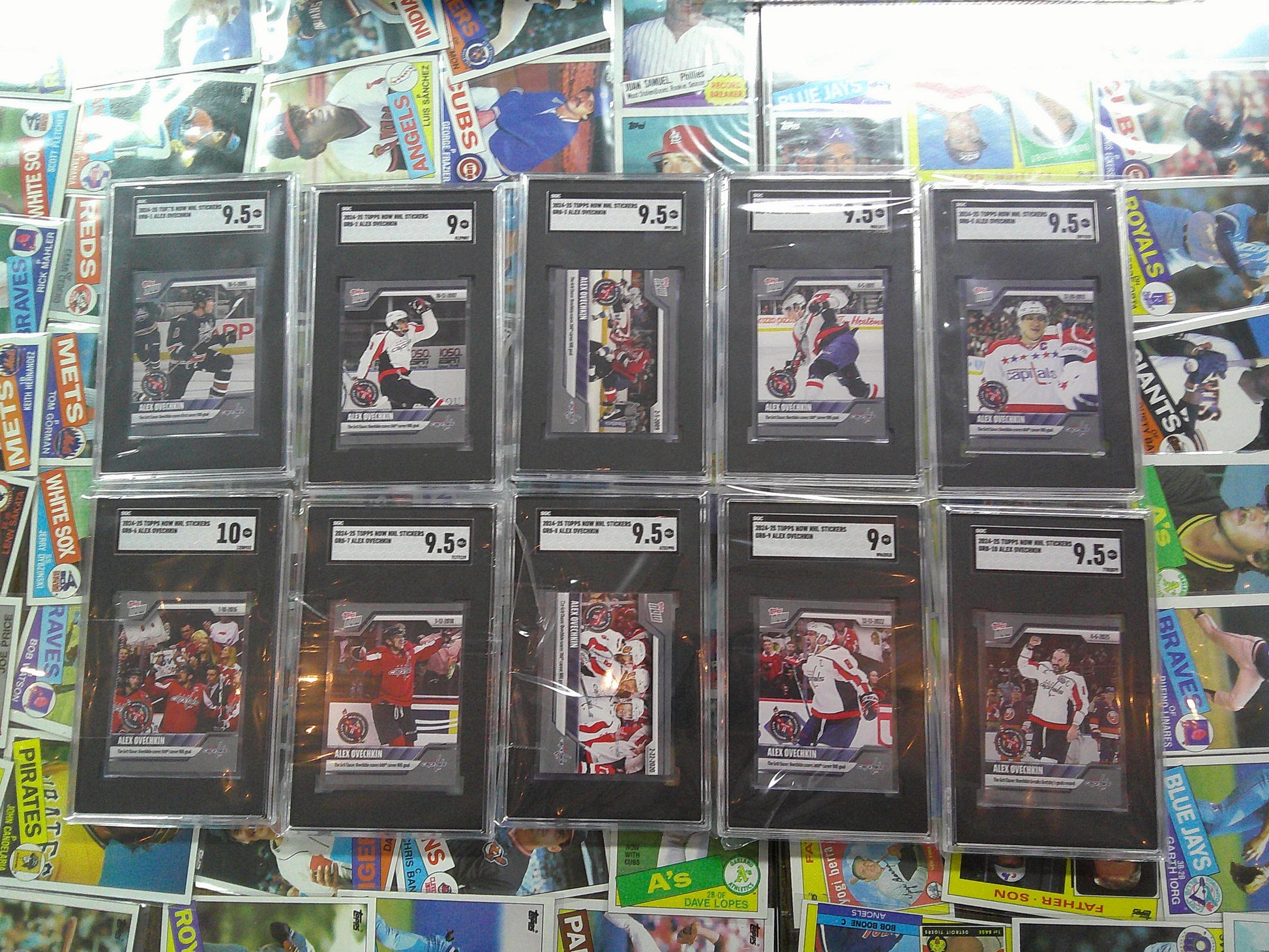 2024-25 Topps Now NHL Stickers GR8-1-10 Alex Ovechkin SGC 9-10. Set of 10 with varying grades 9, 9.5, and 10. Catalog numbers will vary.