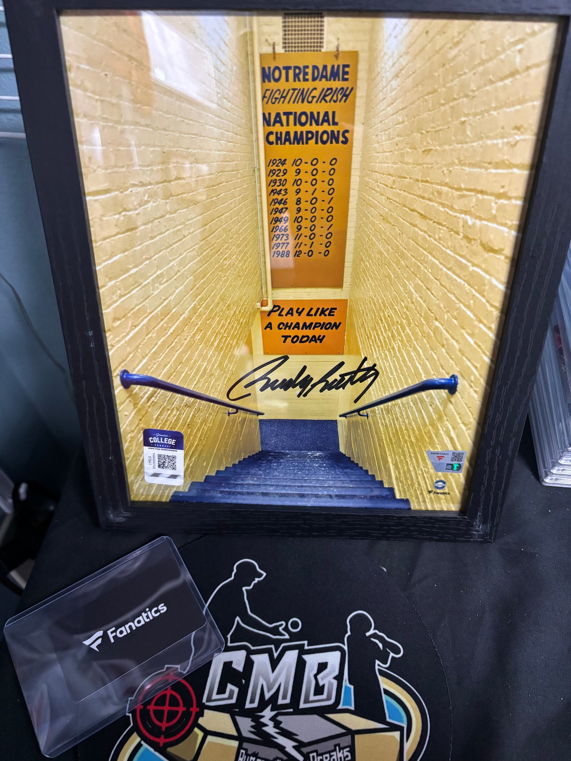 Rudy Ruettiger Notre Dame Fighting Irish Autographed Fanatics Authentic 8" X 10" Framed Play Like A Champion Today Sign Photograph.